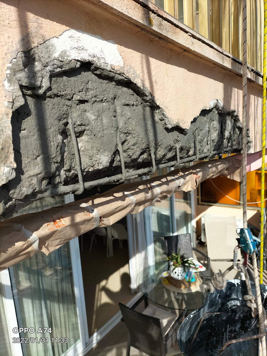 Nos encontramos con este tipo de reparaciones en todos los edificios, cosa que no es problema ya que con los pasivadores, anodos y morteros R4 la reparación es viable y duradera.