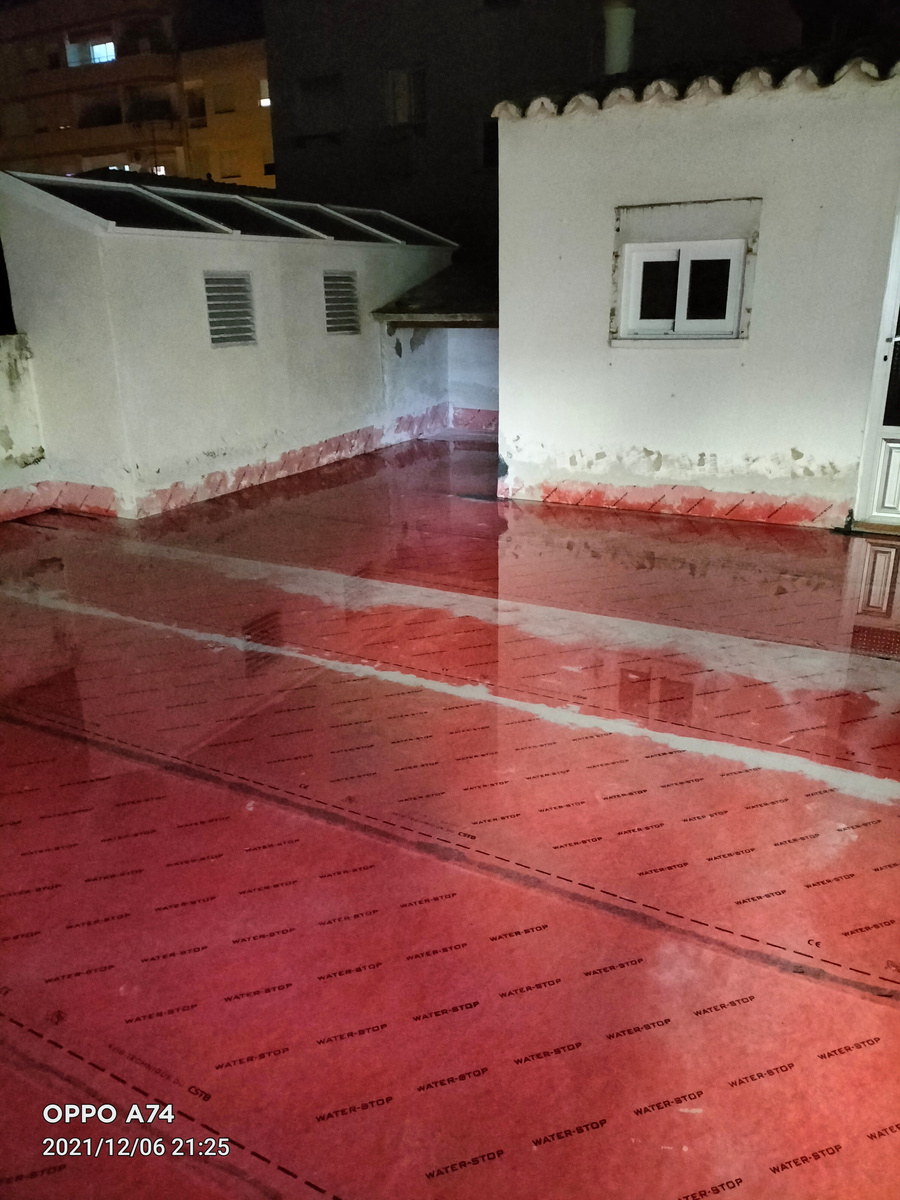 Enbalsamiento durante 48h para comprobar que no da fuga de agua, transcurrido este tiempo ya se puede comenzar con la instalación del piso contratado.