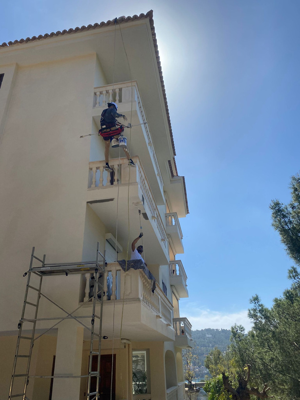 Cómo ya se sabe, todos los materiales de construcción se pueden pintar y con el acceso por cuerdas es posible llegar a todos los lugares.